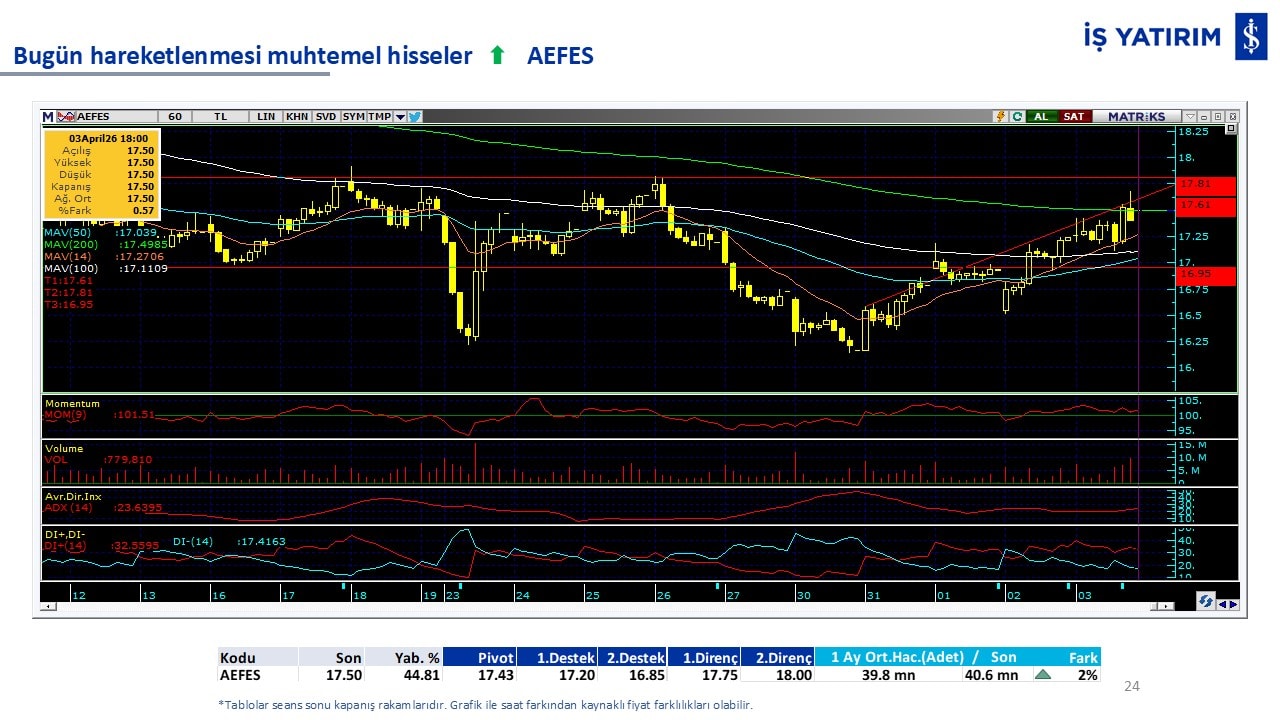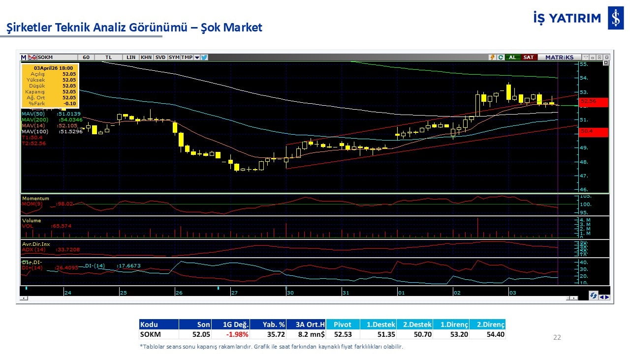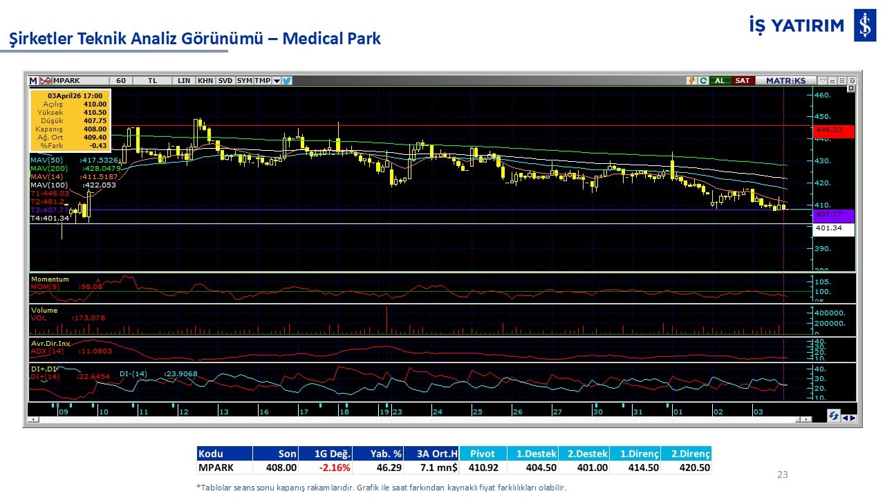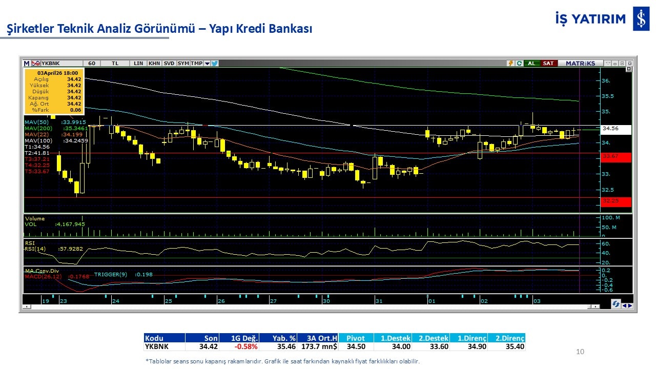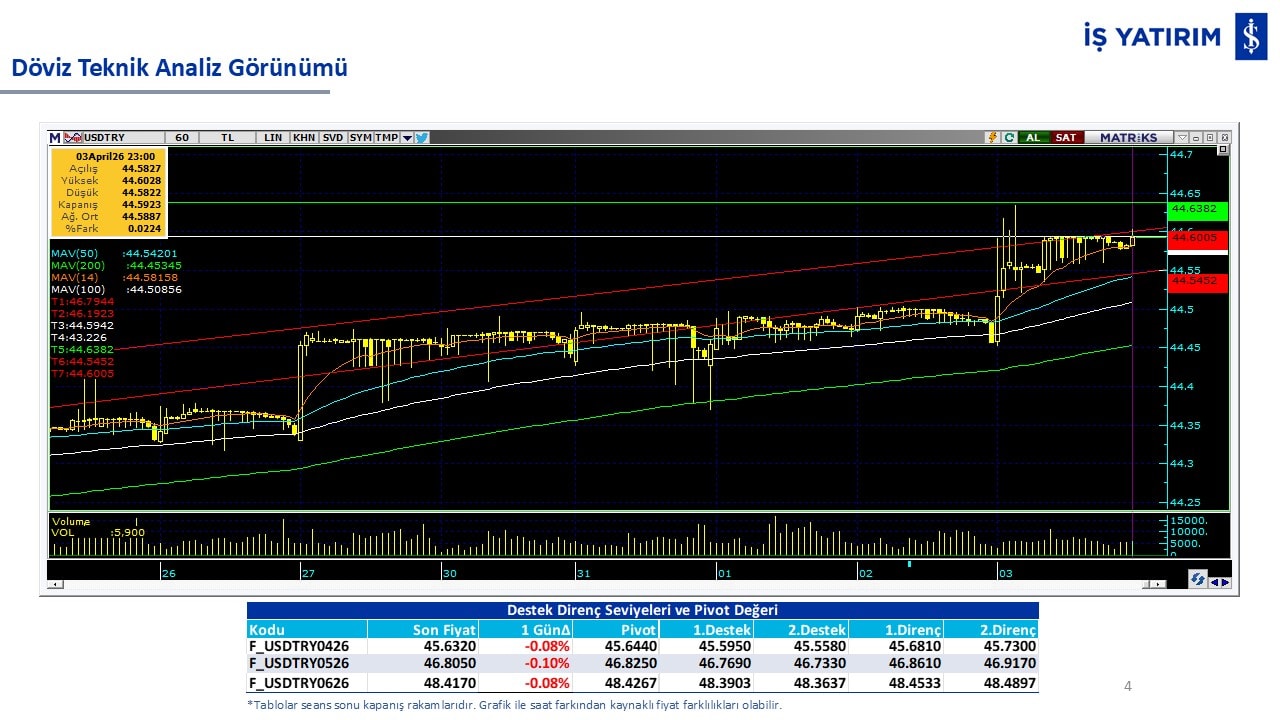 “Teknik Bülten” raporumuzun içeriğinde; Vadeli endeks, kur, BIST100 endeksi, temel analiz tarafında da öneri verdiğimiz 18 adet hissenin teknik destek/direnç seviyeleri ve buna baz teşkil eden teknik grafikleri, bugün piyasadan pozitif ayrışma ihtimali olan hisseler ve bunların teknik destek/direnç seviyeleri, piyasa rakamları, dün çok açığa satış yapılan hisse senetleri ve kısa vadeli işlem önerilerimizden son 10 tanesi yer almaktadır.