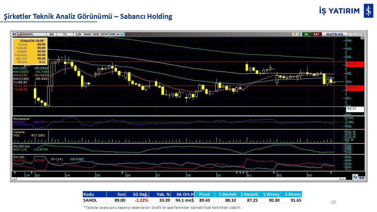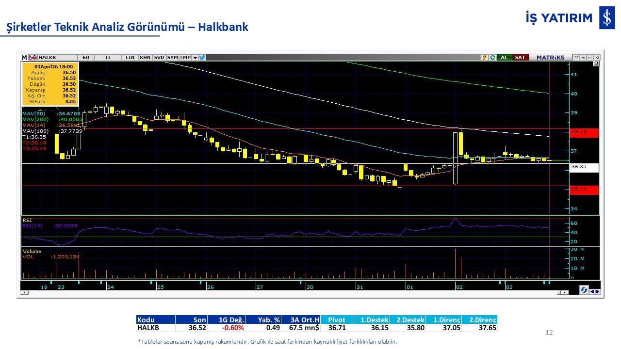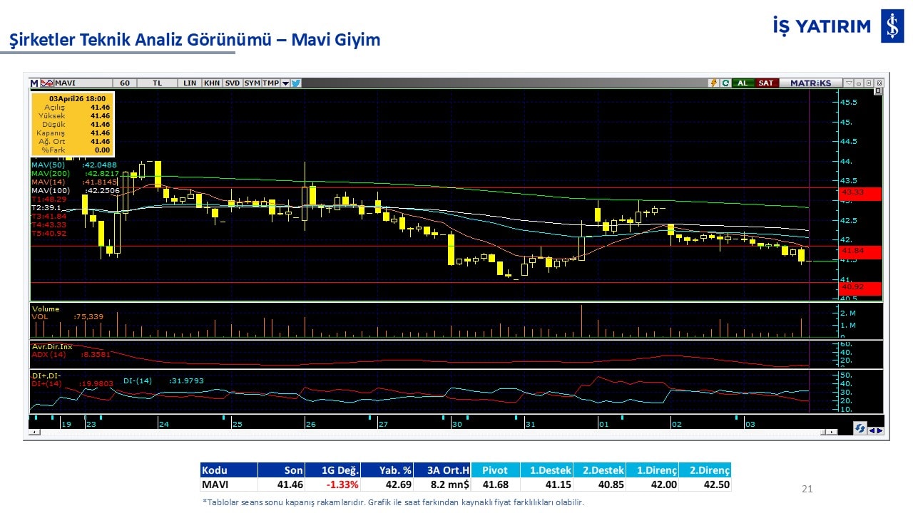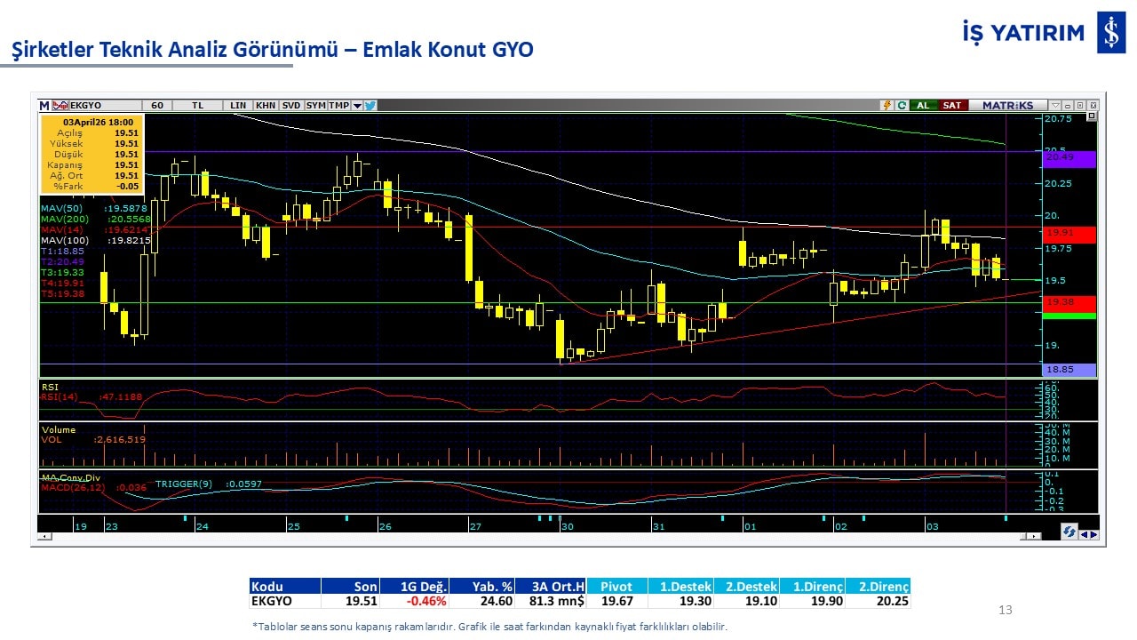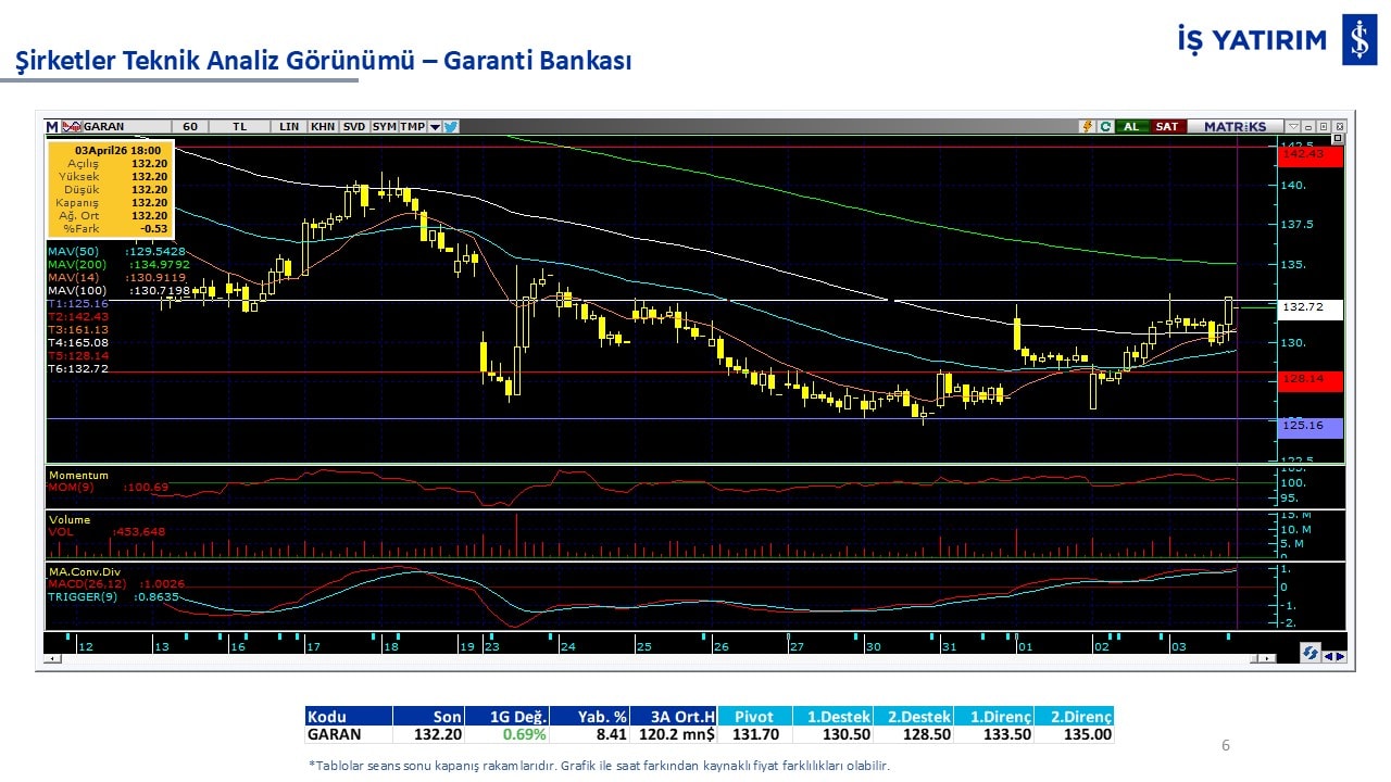 Teknik analiz görünümü olan şirketler: GARAN, THYAO, ISCTR, AKBNK, YKBNK, VAKBN, HALKB, EKGYO, TCELL, ENKAI, KCHOL, MAVI, ARCLK, ALARK, SAHOL, AGHOL, SOKM, MPARK.