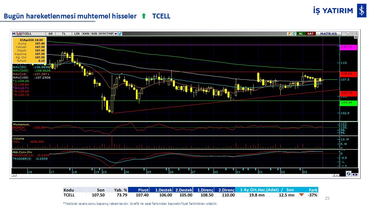 Bugün hareketlenmesi muhtemel hisseler: TCELL-AEFES