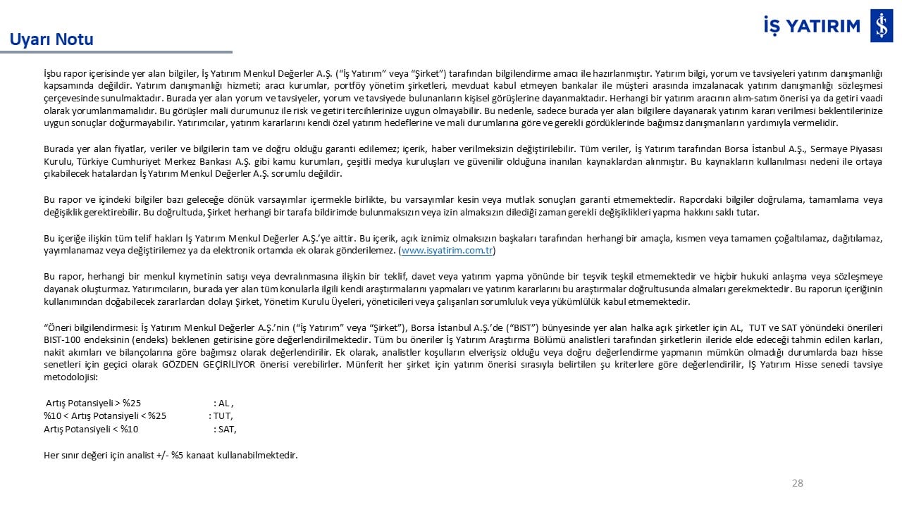 Bu içeriğe ilişkin tüm telif hakları İş Yatırım Menkul Değerler A.Ş.’ye aittir. Bu içerik, açık iznimiz olmaksızın başkaları tarafından herhangi bir amaçla, kısmen veya tamamen çoğaltılamaz, dağıtılamaz, yayımlanamaz veya değiştirilemez.